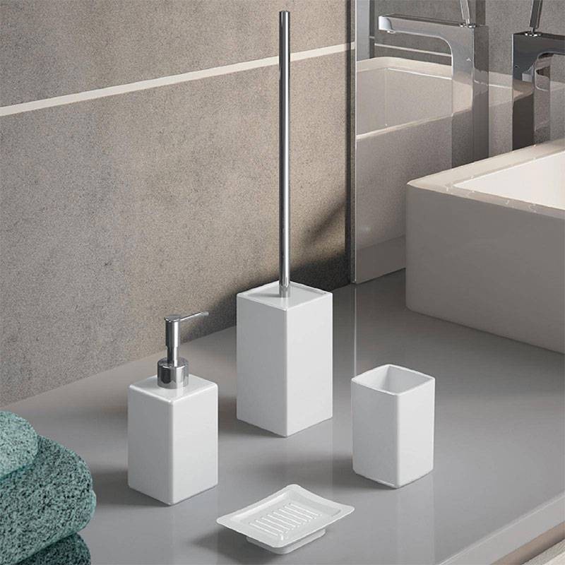 Porta scopino d'appoggio Gedy Verbena colore bianco, realizzato in ceramica, dimensioni 7,8x7,8x45,6cm.