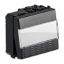 Pulsante portanome 1P 10A 250V Master Modo, 2 moduli colore grigio. Questo pulsante è dotato di una predisposizione per la retro-illuminazione e viene inserito posteriormente sui supporti. Viene usato per il pulsante campanello ed è possibile scrivere al suo interno il proprio nome/cognome.