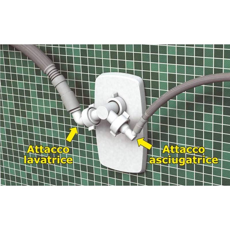 Provvisto di 2 attacchi per lavatrice/lavastoviglie e 1 attacco per asciugatrice. Attacco al sifone con dado da 3/4.