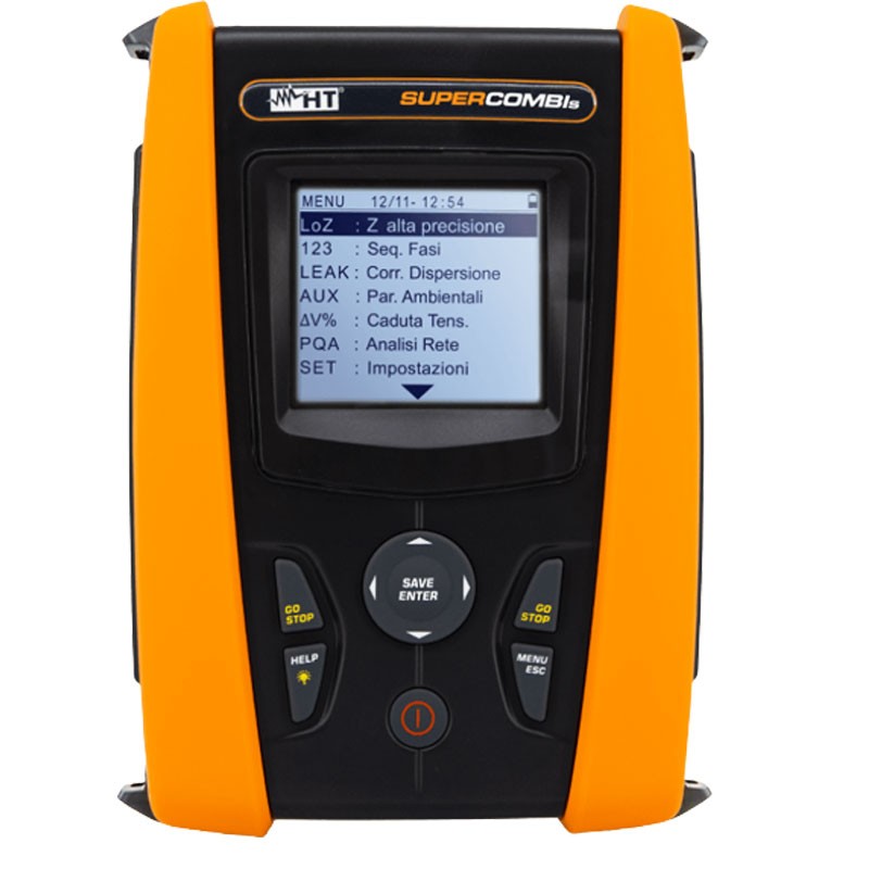 SUPERCOMBI effettua le verifiche degli impianti elettrici in conformità alla CEI 64-8 e quindi misure di Resistenza Globale di Terra, test su RCD di tipo A, AC e F fino a corrente nominale di 1A, e di tipo B/B+ fino a 300mA, Isolamento fino a 1000V, Continuità e correnti di corto circuito, per la misura e salvataggio di parametri ambientali (illuminamento, temperatura), della corrente di dispersione e delle grandezze elettriche potenza attiva, armoniche, fattore di potenza su impianti Monofase e non ultima la possibilità del controllo del senso ciclico delle fasi. Presente inoltre, relativa alla misura di Isolamento, la verifica del rapporto di assorbimento dielettrico D.A.R. e dell' indice di polarizzazione P.I.