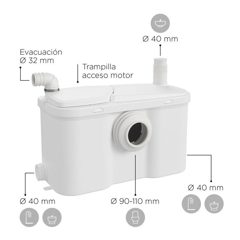 Il trituratore WS3 Watersan (gruppo SFA) ti permette di installare con facilità, e senza alcun obbligo di lavori invasivi, un WC, un lavabo, una doccia e un bidet. Quando non non è possibile collegarsi alla rete fognaria, i trituratori offrono una soluzione veloce ed efficace per ovviare alcuni limiti.