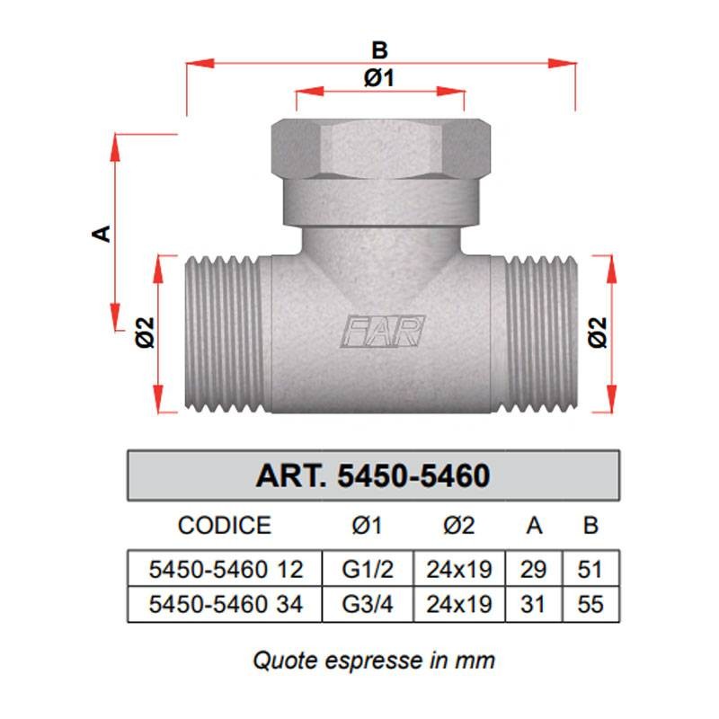 Raccordo a T Far 1"x22 F cromato tenuta gomma 5460 1G22