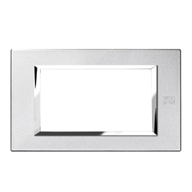 Placca Expì Urmet Simon Nea 4 moduli (frutti, posti) colore argento mercurio, realizzata in metallo. Può essere installata solo sul supporto 10704N.