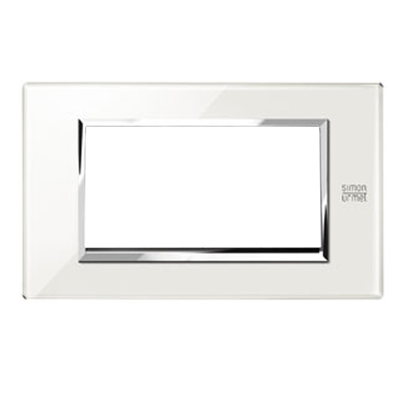 Placca Expì Urmet Simon Nea 4 moduli (frutti, posti) colore bianco neve, realizzata in vetro. Può essere installata solo sul supporto 10704N.