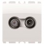 Presa diretta TV-SAT demiscelata Urmet Simon Nea, attenuazione 2 dB, connettore maschio IEC 169-2 (TV) e femmina (SAT), 2 moduli colore bianco ghiaccio.