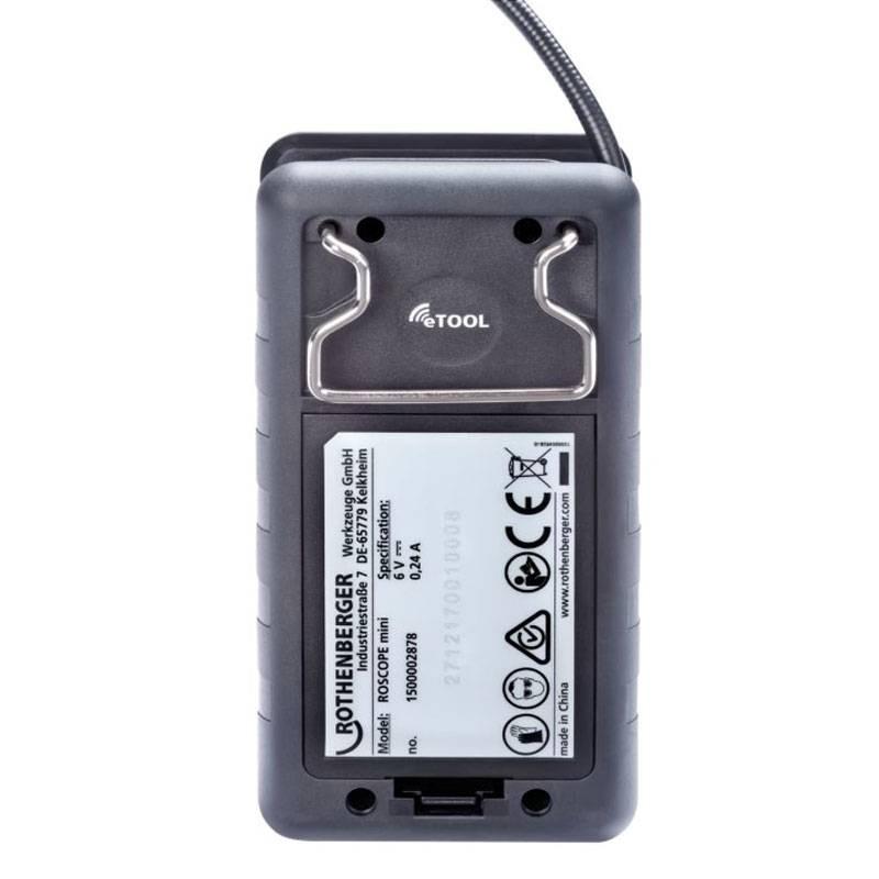 Videocamera Rothenberger ROSCOPE Mini a batteria per sifoni docce e cavità difficili da raggiungere con le seguenti caratteristiche: