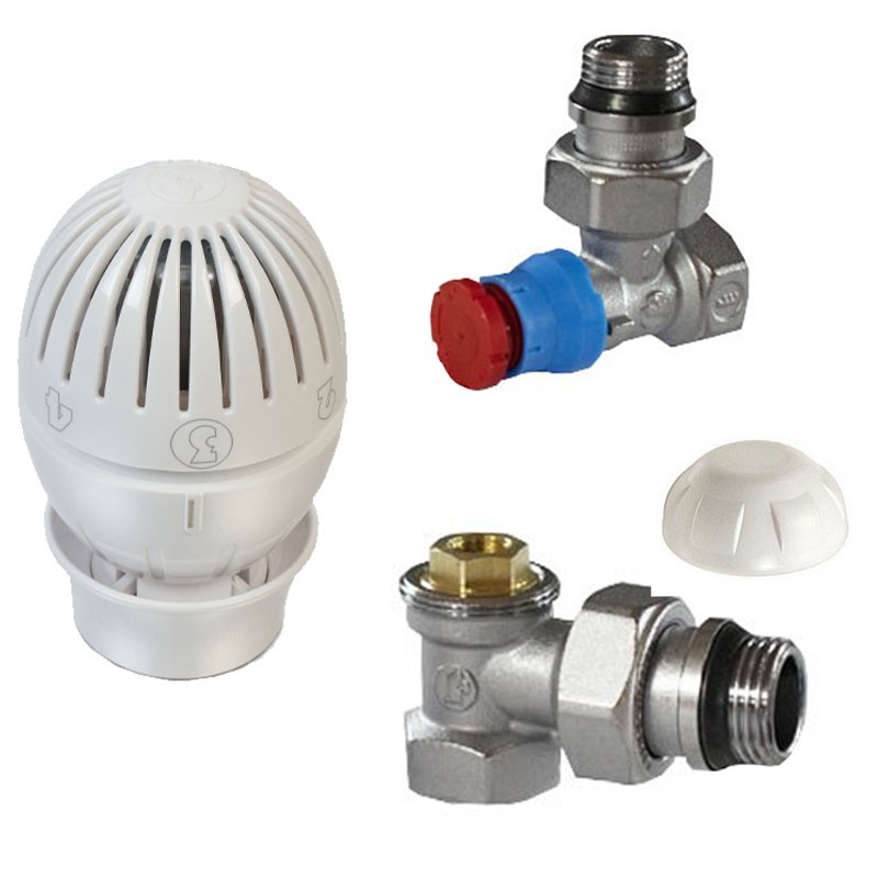 - Valvola termostatizzabile a squadra con protezione da cantiere e attacco tubo ferro