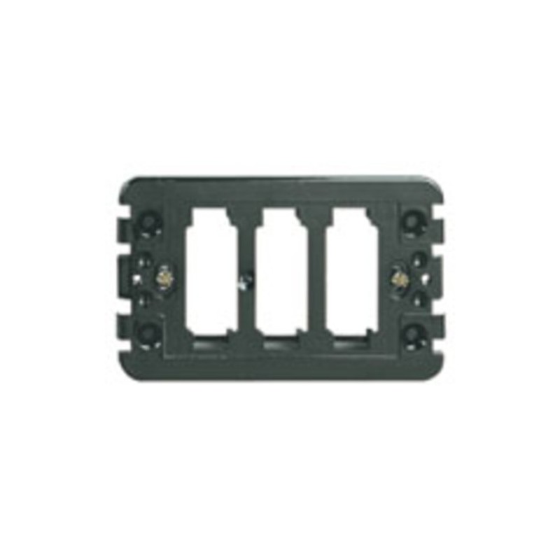 Supporto Vimar serie 8000 1-2-3 Fori per scatola rettangolare standard, con viti, per scatole da incasso rettangolari unificate 3 moduli o da parete 09968, 09968, 09974, nero.