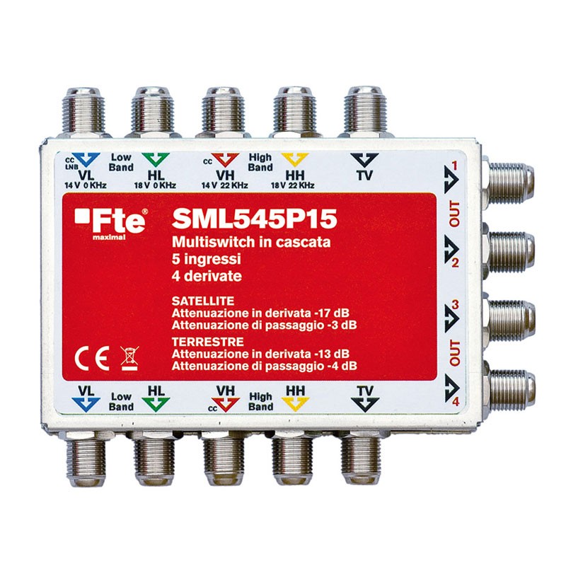 Multiswitch in cascata FTE 5 IN e 4 Derivate 15 db SML545P15