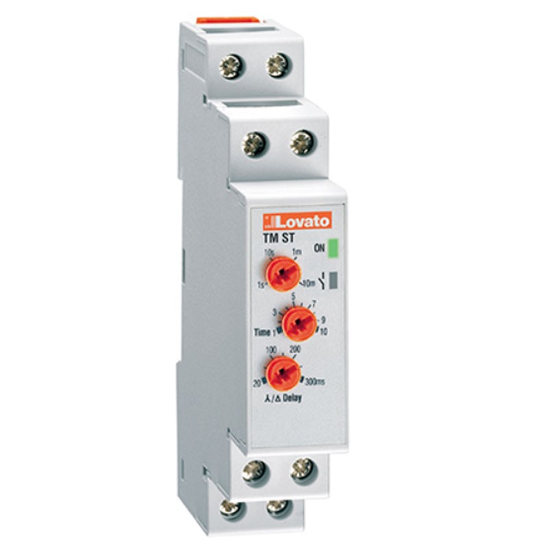 Relè temporizzato per avviamento stella-triangolo, multiscala e multitensione Lovato, con le seguenti caratteristiche: