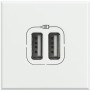 Caricatore USB doppia presa Bticino Axolute bianco. Il caricatore è alimentato e serve per caricare tefonini,smartphone,tablet e tutti i dispositivi che possono essere ricaricati mediante USB.