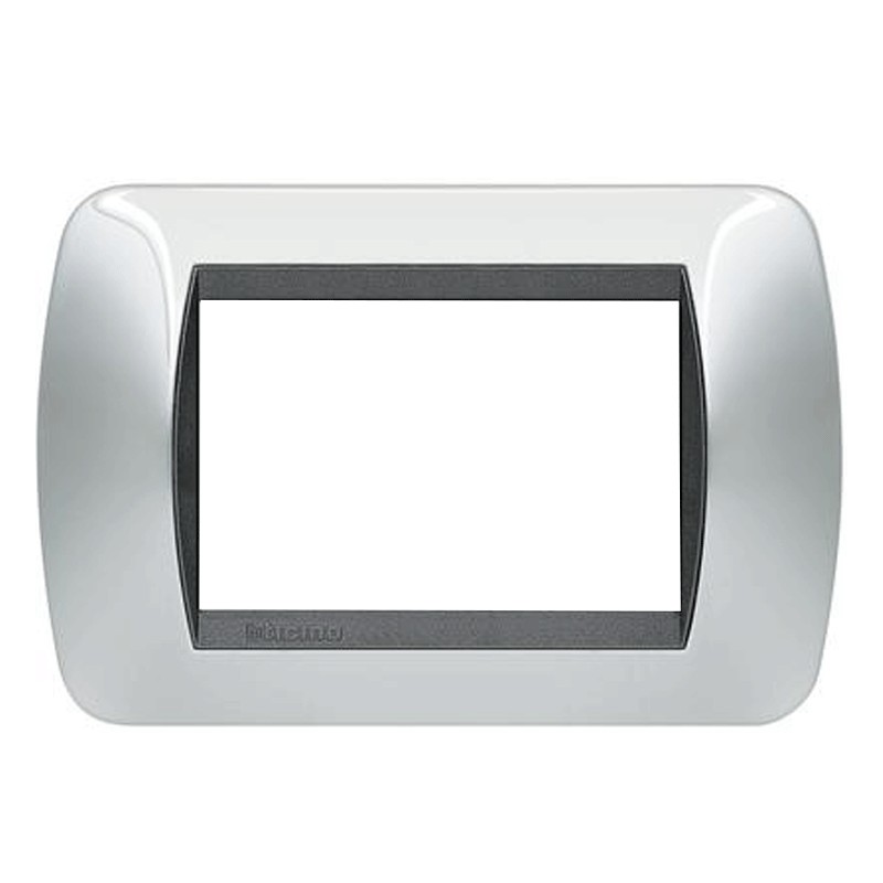 Placca Bticino LivingLight (ex international) 3 moduli (frutti, posti) colore cromo lucido. La placca può montare su supporto L4703 (vecchio modello fuori produzione) e su LN4703.