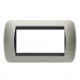 Placca Bticino LivingLight (ex international) 4 moduli (frutti, posti) colore grafite. La placca può montare su supporto L4704 (vecchio modello fuori produzione) e su LN4704.