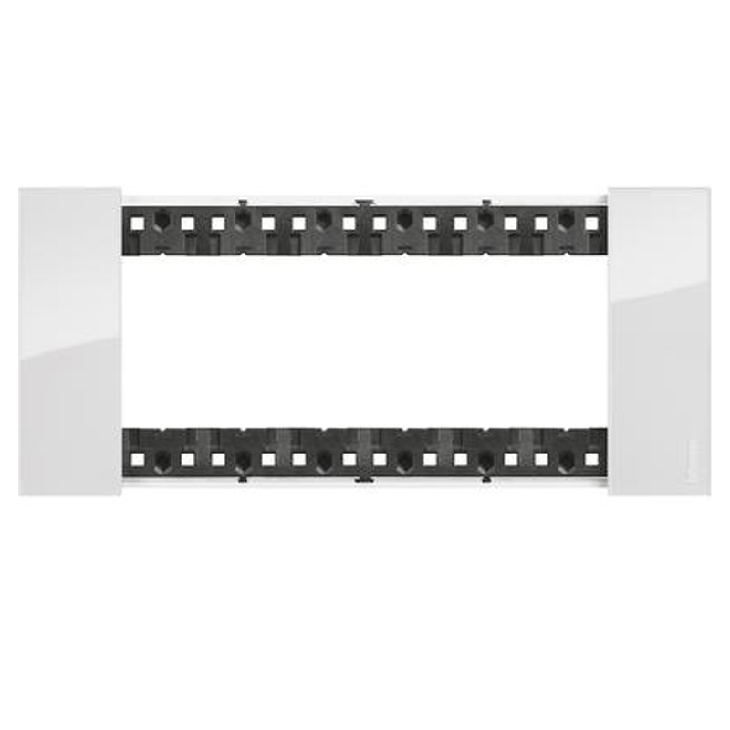 Placca Bticino Living Now 6 posti colore ghiaccio. Va applicata solo su supporto K4706, materiale: plastica bimaterica, dimensioni altezza 86 - larghezza 192.5.