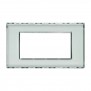 Placca Tonda 4 moduli (frutti,posti) Bticino LivingLight colore cromo lucido. Può essere installata solo su supporto LN4704. La placca non si installa su altre serie Bticino ma solo su LivingLight