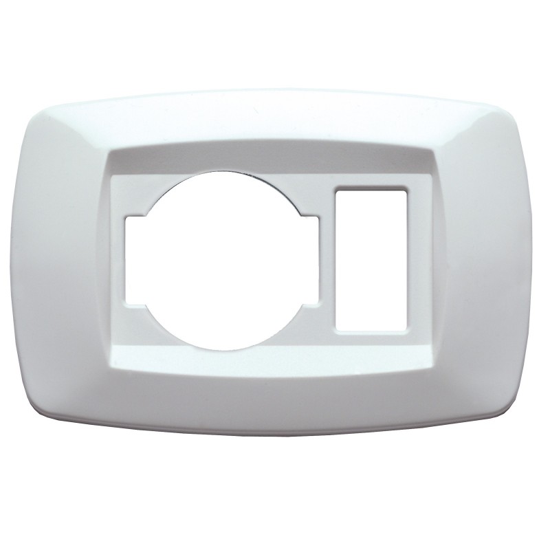 Placca Master modì 1 foro + presa unel schuko. Colore bianco. Monta sul supporto 00376.