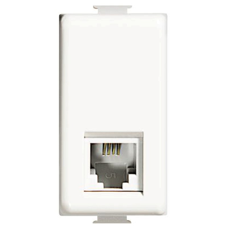 Presa telefonica RJ11 Bticino Matix, colore bianco. La presa telefonica permette di inserire al suo interno i cavetti con plug dei telefoni attualmente in commercio.