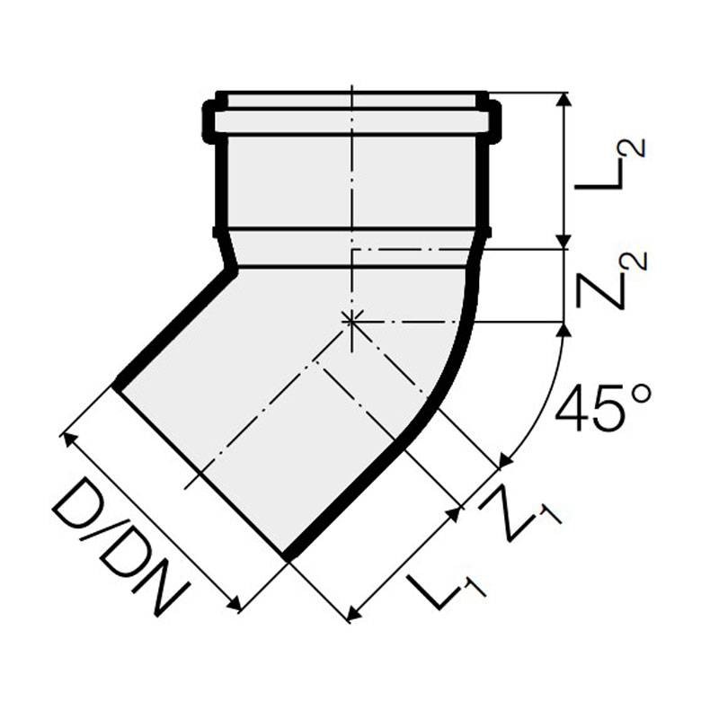 Curva 45 gradi per tubi di scarico fonoisolante in PP Polipropilene Valsir Triplus a innesto con le seguenti caratteristiche: