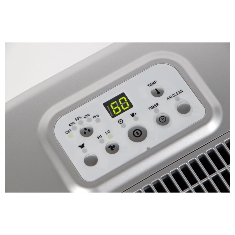 - Umidostato, che consente di impostare il tasso di umidità residua dell’ambiente (40%, 50%, 60%, 70% o continuo).