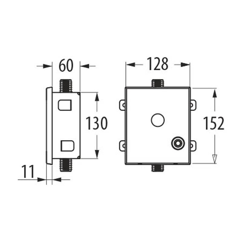 Sistema elettronico ad incasso per orinatoio singolo DMP Fin 300 con pulsante con le seguenti caratteristiche:
