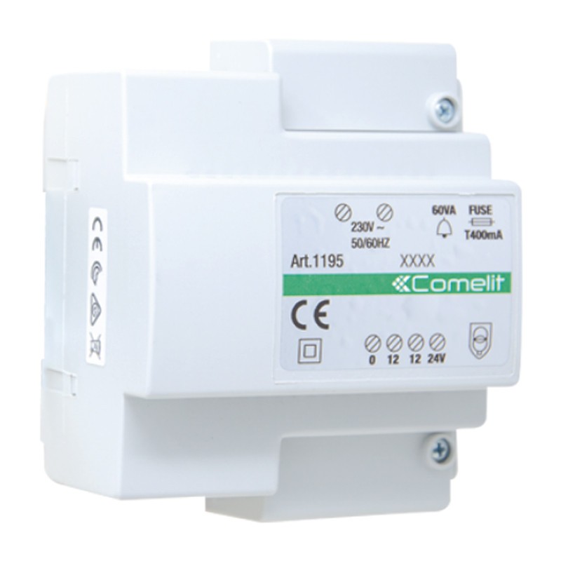 Tasformatore Comelit 60VA, ingresso 230VAC, uscita 12/24VAC 1195