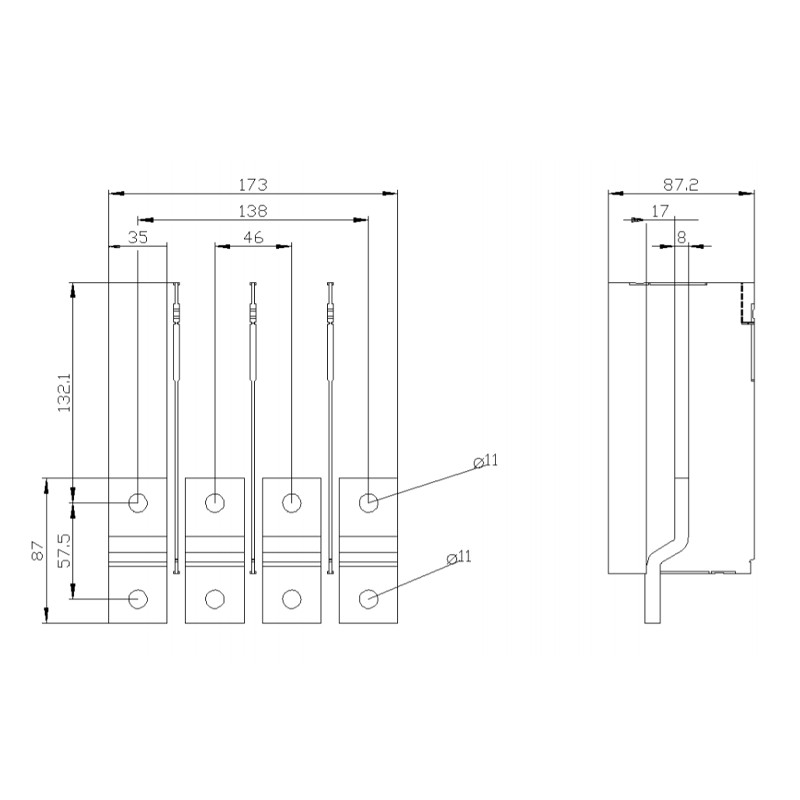 Attacchi a sbarra anteriore sul lato frontale Siemens, per serie scatolato 3VA23.
