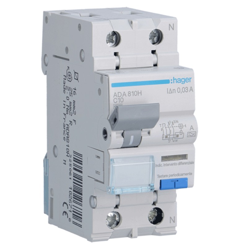 Interruttore differenziale magnetotermico Hager 1P+N 30MA 10A ADA810H