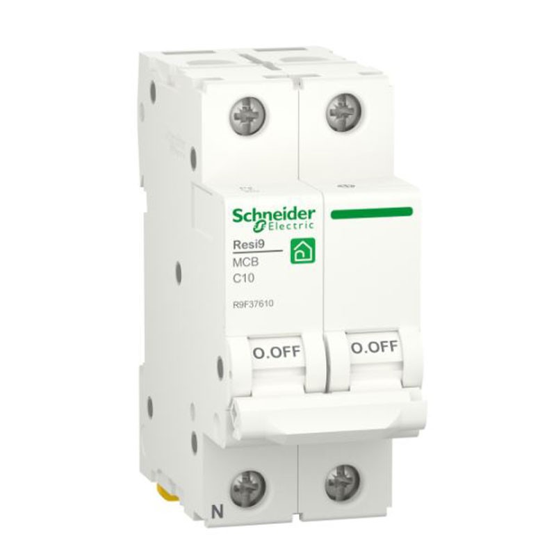 Interruttore magnetotermico Schneider Resi9 10A, Poli 1P+N, potere di interruzione 4,5KA C 2 Moduli, tensione di isolamento nominale 440V, attacco DIN (universale per qualsiasi centralino in commercio), curva d'intervento C.