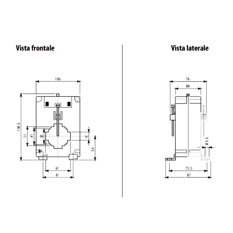 - Apertura (foro) per passaggio cavo o sbarra (primario)