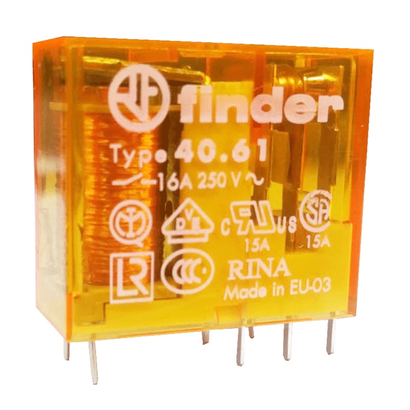 Mini relè per circuito stampato ed a innesto Finder, con le seguenti caratteristiche: