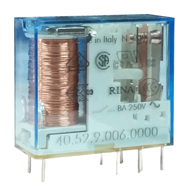 Mini Relè Finder 2 scambi 8A bobina 6VDC continua 405290060000