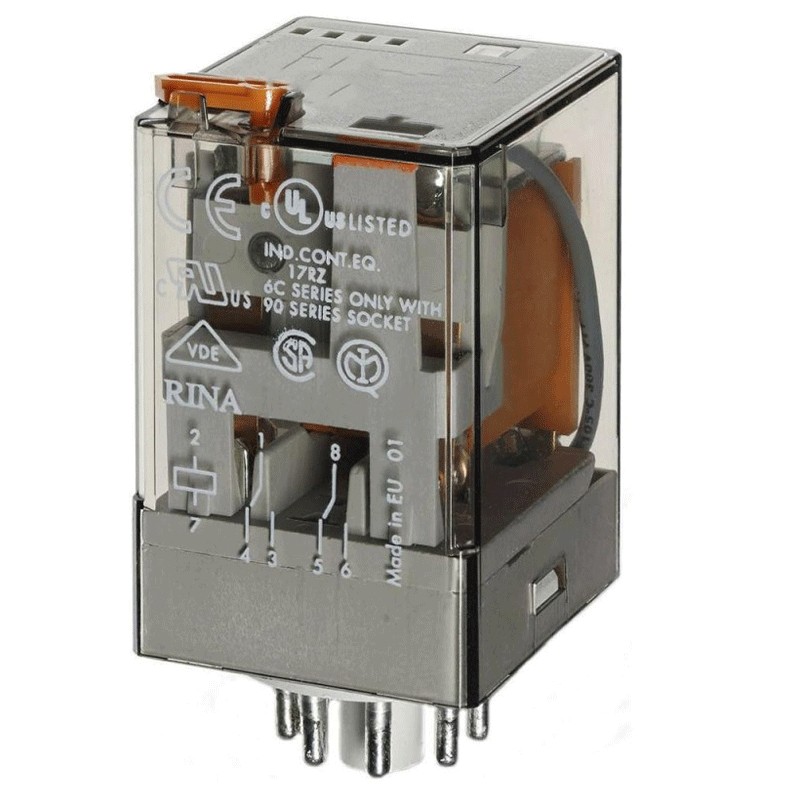 Relè Octal Finder ad innesto 2 scambi 10A 24VAC 601280240040