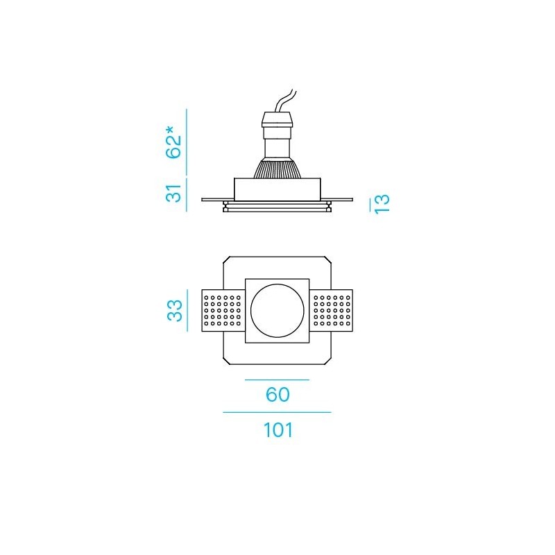 Faretto Nobile ad Incasso a scomparsa totale, installazione in soffitto di cartongesso. Corpo in gesso. Portalampade incluso nella confezione. Lampada non inclusa.
