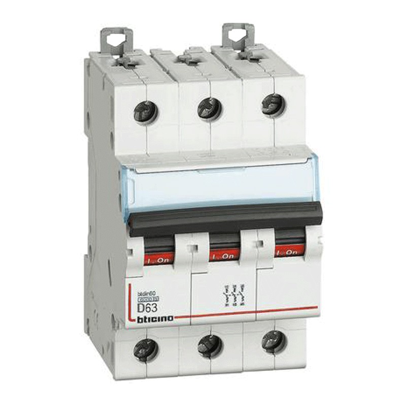 Interruttore magnetotermico Bticino 63A 3 Poli 6KA Curva D 3 Moduli FN83D63