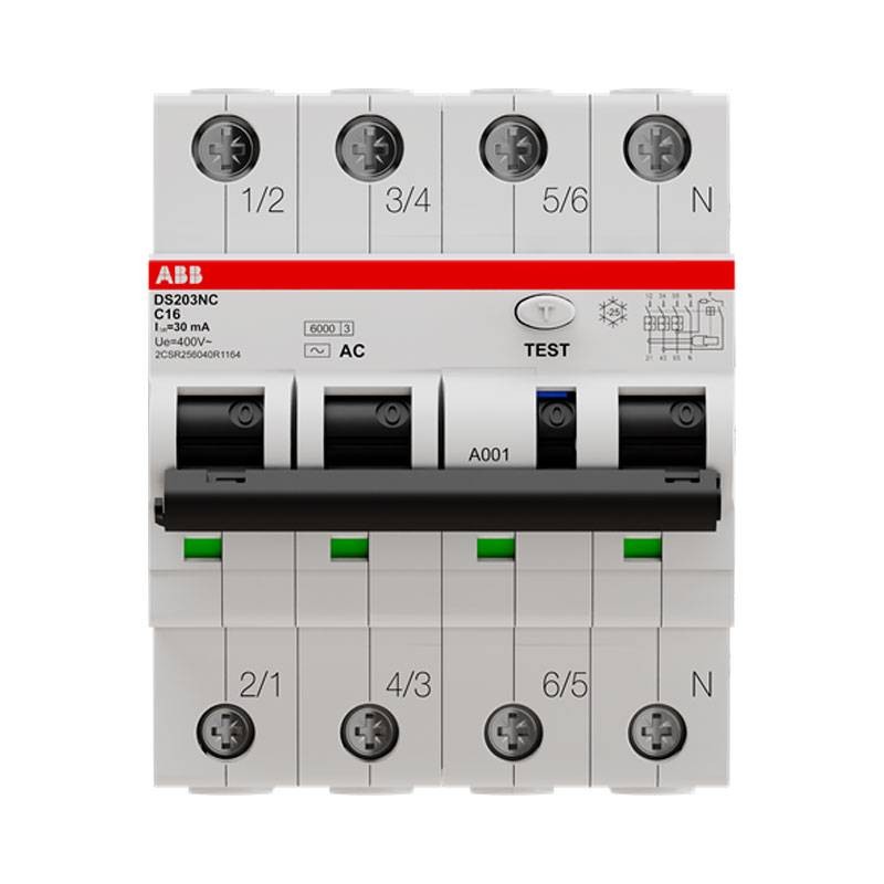 Magnetotermico differenziale ABB 4P 16A 30mA 6KA Tipo AC 4 Moduli DS3NC16AC30