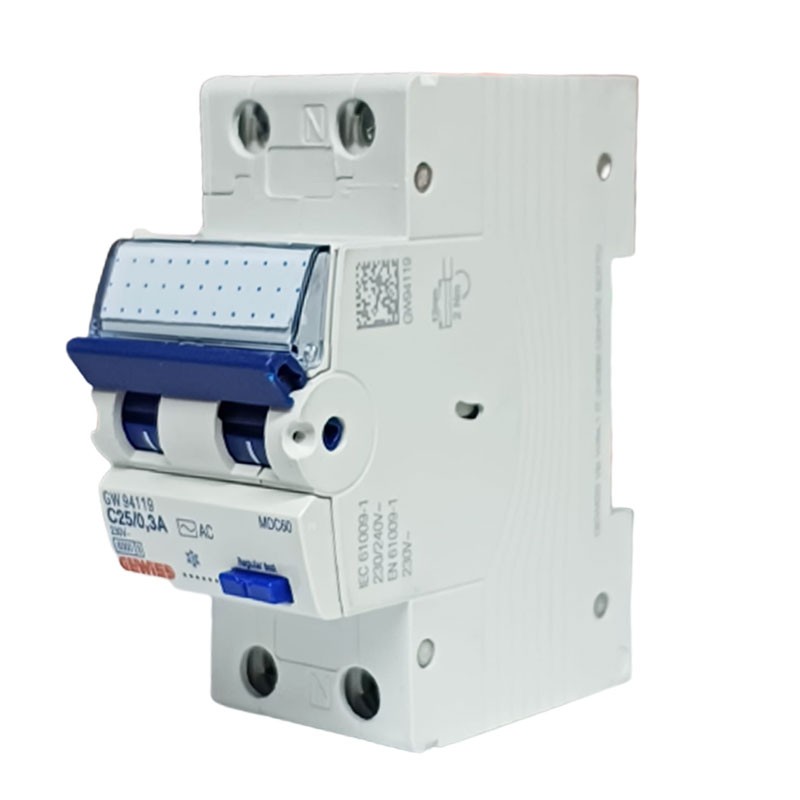 Magnetotermico differenziale Gewiss 25A 1P+N 300MA AC 6KA 2 Moduli GW94119