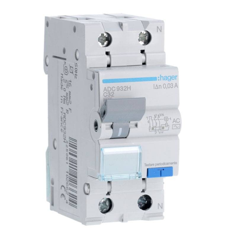 Interruttore differenziale magnetotermico Hager 1P+N 32A 30MA 6KA 2M ADC932H