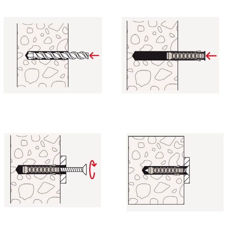 - Quando si avvita la vite, il fissaggio SX si espande in quattro direzioni, fissandosi saldamente al materiale di supporto