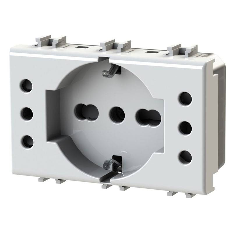 Presa 4Box P503 compatibile con la serie Vimar Plana composta da 1 schuko, 2 prese 10A e 1 presa 10/16 A.