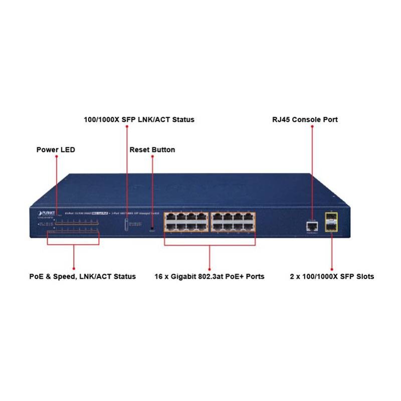 Pay in installments with KlarnaPLANET GS-4210-16P2S è uno switch PoE Gigabit ideale che offre un vantaggio economico alla rete locale ed è ampiamente accettato nella rete degli uffici delle PMI. Offre funzioni intelligenti di gestione e commutazione dei pacchetti di dati Layer 2 , un'interfaccia utente Web intuitiva e un funzionamento stabile. Il modello è conforme a IEEE 802.3at Power over Ethernet Plus (PoE+) a un prezzo accessibile. Il GS-4210-16P2S è dotato di 16 porte Gigabit Ethernet 10/100/1000BASE-T e 2 interfacce SFP 100/1000BASE-X con sistema di alimentazione interno. Sono le 16Porte Gigabit Ethernet integrate con funzione iniettore PoE+ 802.3at su tutte le porte. Offre una soluzione di alimentazione montabile su rack, conveniente, sicura e affidabile per le PMI che implementano reti Power over Ethernet o che richiedono una maggiore sicurezza dei dati e gestione del traffico di rete.