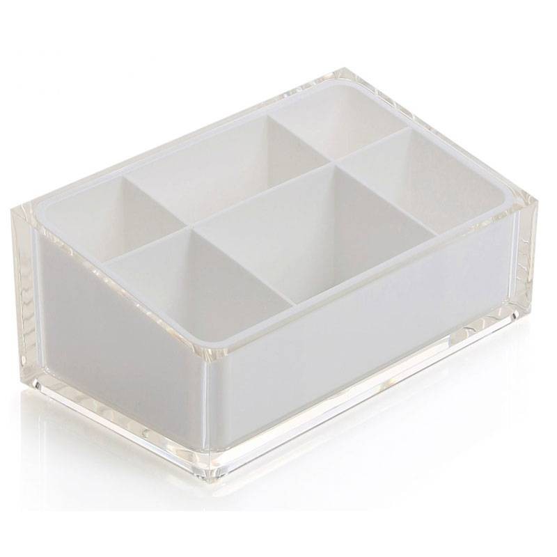 Organizer portatrucchi d'appoggio Gedy Rainbow colore bianco, in resina, 6 scomparti, dimensioni 19x11x7,5cm.