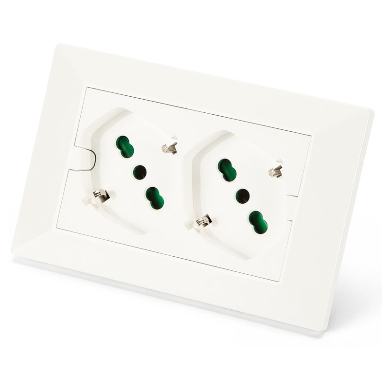 Multipresa ad incasso Fanton Opera con 2 prese bipasso italo/tedesche 2P+T 16A, 3 Moduli, montaggio diretta sulla scatola (esempio 503E) ad incasso senza utilizzare i supporti, la placca si fissa ad incasso senza aggiunta di ulteriori accessori. Colore Bianca.
