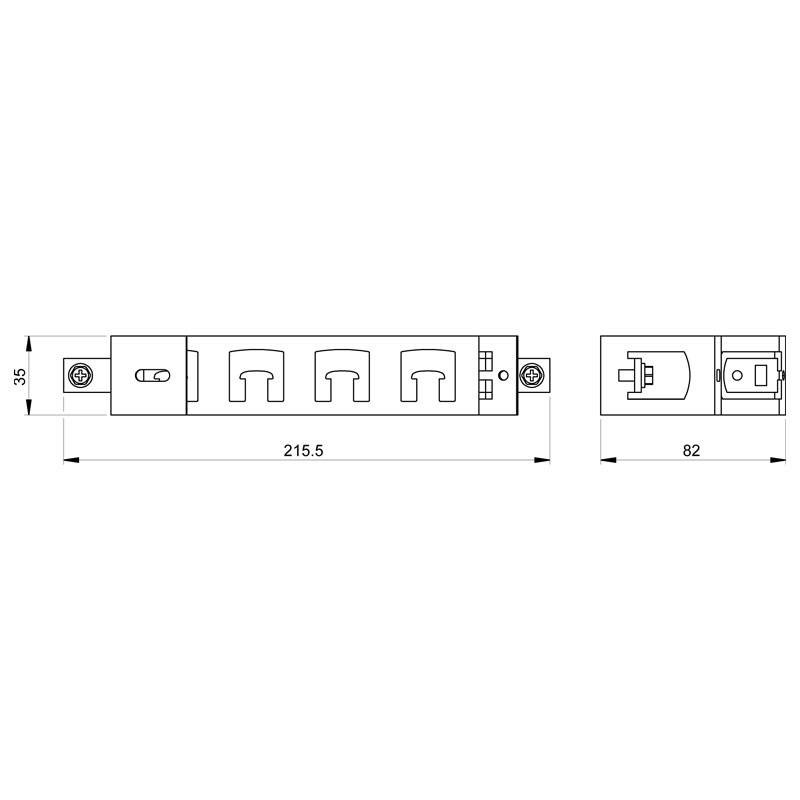 - Dimensioni: altezza 35 mm - larghezza 215 mm - profondità 82 mm