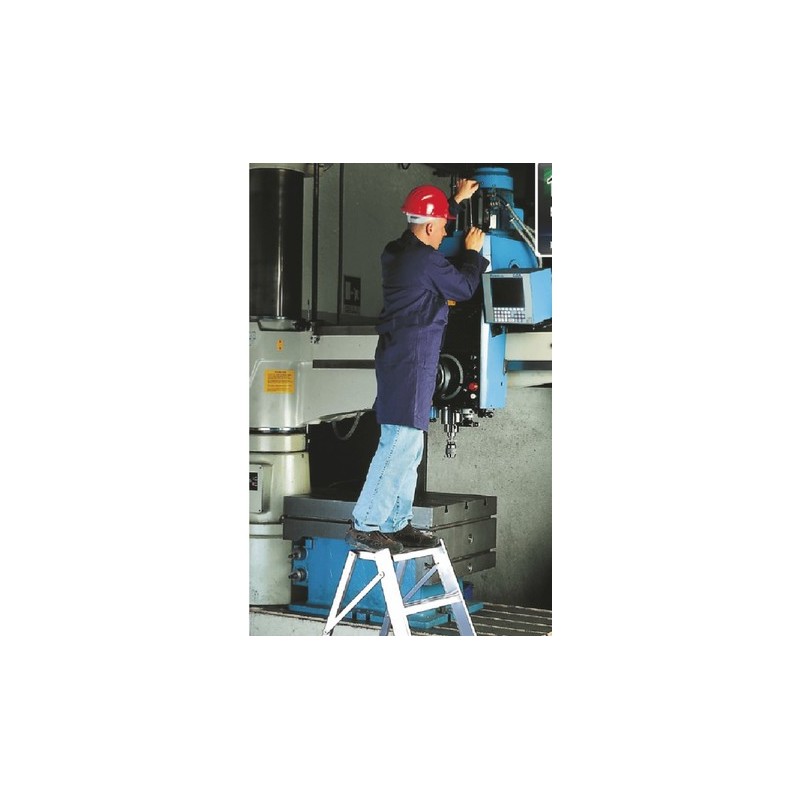 Sgabello Pieghevole Professionale Frigerio in alluminio altezza 0,95 mt, numero scalini compreso piattaforma 3 - piattaforma 40x26cm - larghezza scala 0,55 mt, peso 5 Kg, Sgabello pieghevole con piattaforma in alluminio, Gradino anti-scivolo profondo mm. 83 unito al montante mediante robusta saldatura ad angolo nascosta alla vista, Montante scatolato a doppia anima mm. 80 x 23, per caratteristiche tecniche vedi sotto.