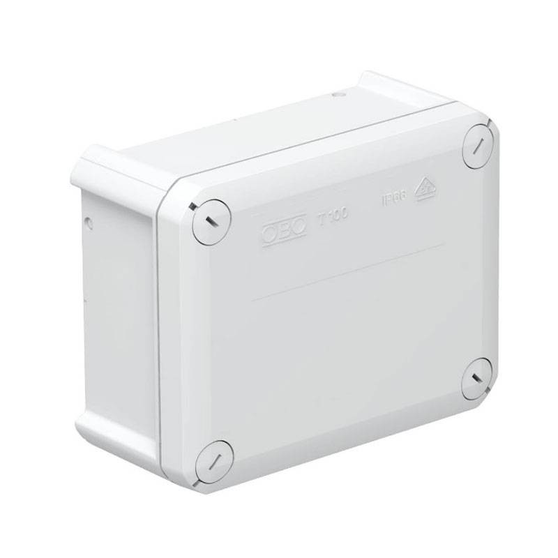 Tutte le cassette di derivazione cavi della serie T sono resistenti agli UV. Sono fabbricate in polipropilene (un materiale termoplastico) e sono dotate di pareti laterali chiuse. Le aperture necessarie possono essere create in qualsiasi posizione. Per l'introduzione dei cavi nelle aperture possono essere inserite le tenute a innesto EDK o i pressacavi con controdado. Le scatole di derivazione possono essere fissate su piastre di montaggio tramite le aperture sul fondo. Coperchio con campo di siglatura e possibilità di piombatura.