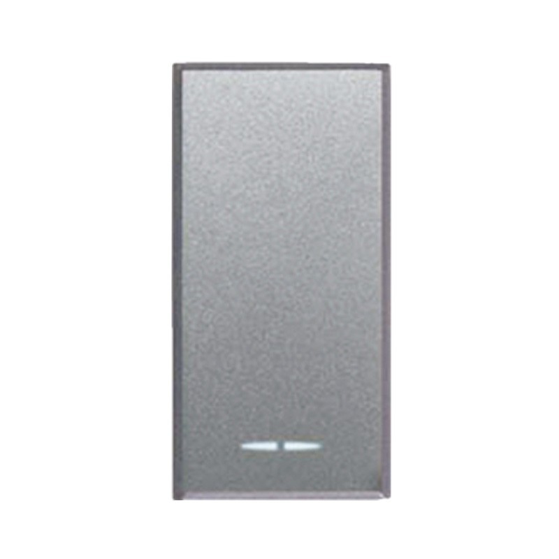 Pulsante tasto con gemma, Ave Allumia S44, colore Grigio Tech, N.A. 1P 10A illuminabile, finitura lucida, 1 Modulo.