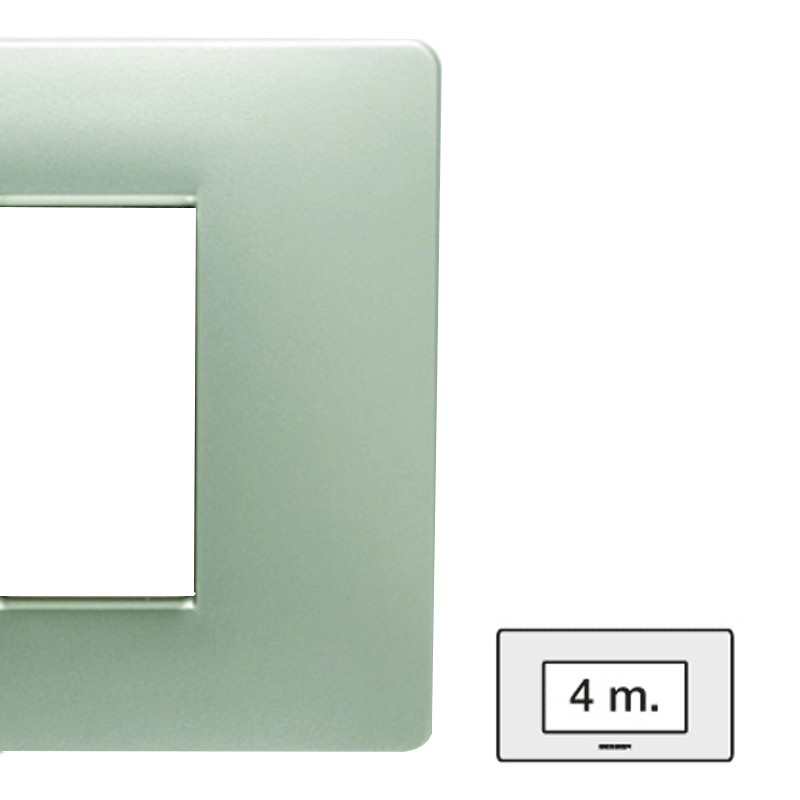 Placca rettangolare Master Mix 4 posti (moduli) colore grey moon metallizzato, realizzata in tecnopolimero, in grado di resistere ad elevate temperature e all’invecchiamento. Le placche della serie Mix si installano tramite un fissaggio a scatto.