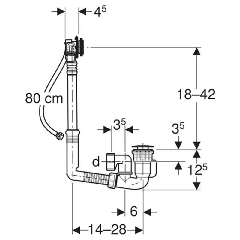 Sifone per vasca da bagno Geberit d52 con azionamento a rotazione ed erogazione al troppopieno principio contro flusso con le seguenti caratteristiche: