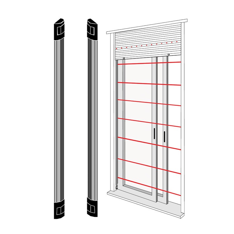 Barriera a infrarosso Bentel IR per porte e finestre con 4 raggi barre di altezza 1 metro, distanza tra le barriere Max 6 metri.