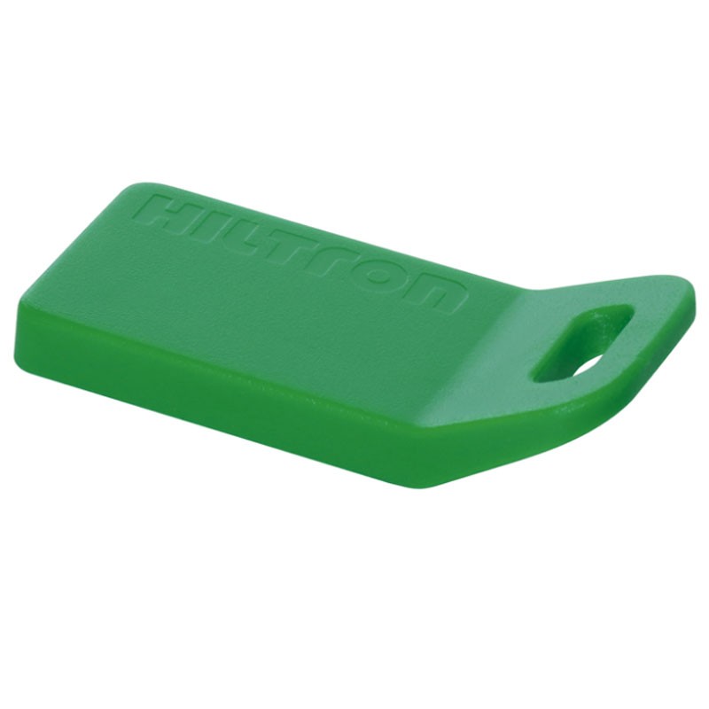 Chiave di prossimità Hiltron per lettori DX200-DX300, colore verde. Dimensioni: L19mm - A44mm - P10mm.